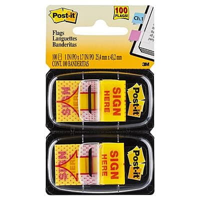 POST-IT 680-SH2 MESSAGE FLAGS SIGN HERE YELLOW