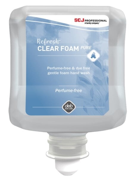 About Refresh™ CLEAR FOAM PURE Features & Benefits Perfume-free and dye-free - Designed for people who are sensitive to perfumes and dyes and who prefer products which do not have these added. Non tainting and assessed according to HACCP guidelines - When used as directed in food production and preparation areas, the product does not influence the quality and safety of foodstuffs. Skin Hypoallergenic - Dermatologist tested to verify and confirm this product has very low allergenic potential and is designed for sensitive skin. Mild preservative - Specially formulated with one of the mildest preservatives to reduce the risk of skin irritation from using this product. Contains Glycerin - A skin moisturiser to help prevent drying and leave the skin feeling smooth after use. Formulated with a low pH value (5.5 – 6.5) - Formulated to maintain the skin’s acid mantle; a layer on the surface of the skin which acts to help support the natural bacteria balance. Washes away over 99% of dirt and germs - Just a single pump is required to deliver highly effective skin cleansing when used properly. Readily Biodegradable - The formula and each of its carbon containing ingredients will decompose into simple, non-toxic substances in 28 days or less in accordance with OECD301F standard. High quality smooth foam - Pleasant silky-smooth skin feel when washing; helps reinforce good hand washing practice. Convenient, quick and easy - Dispenses foam on the hands which is instantly ready for washing and quick & easy rinsing from hands and sinks. Excellent cost in use - Highly economical, only one dose is required to provide effective hand cleansing. Provides over 30% more washes and uses 36% less product compared to lotion soap. Reduces water consumption - Can save up to 45% on water consumption compared to lotion soaps. Compatible with rubber production processes - Independently tested at the German Institute of Rubber Technology (DIK) and proven to have no negative effect on the vulcanisation process.