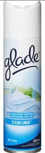 Eliminates odours at their source on upholstery, clothing and in the air with the fresh scent of line-dried laundry. BENEFITS Eliminates odours without just masking. Perfect for both fabrics and air. Use on couches, chairs, carpets and other soft surfaces. Leaves your home with a fresh fragrance that lasts. Glade Air & Fabrics products are specially formulated to fight even the toughest cooking, pet and bathroom odours. Also perfect for eliminating smoke, mould & mildew, and sweaty shoe odours.