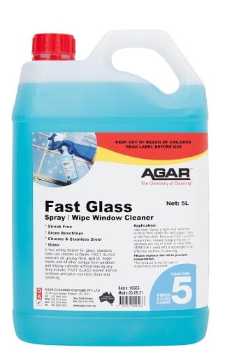 What is Fast Glass? A fast-acting cleaner for glass, stainless steel and chrome surfaces, FAST GLASS removes soilage from windows and display cabinets without leaving streaks. Key Benefits FAST GLASS attacks dirt fast FAST GLASS evaporates quickly, so less wiping is required FAST GLASS is non-streaking FAST GLASS is not classified as Dangerous Goods Sparkling glass and mirrors result when this product is used