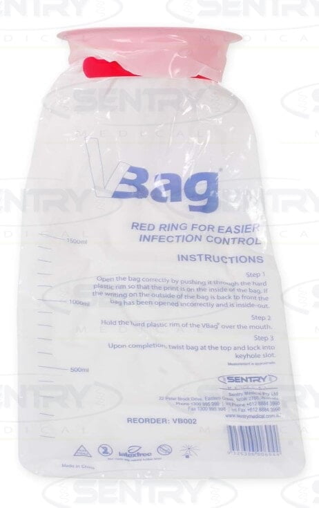 Sentry Medical Emesis Bags have a firm polypropylene twist and lock rim to provide easy control, and help prevent spillage after use. They isolate splash back and have a graduated indicative volume system to 1500ml, allowing measurement of contents in the bag. On completion of use, the bag is easily disposed of with no mess. Simply twist the bag and lock into the keyhole slot on the rim. Suitable For: Infection controlled area First aid Hospital and medical Product Features: Rims are colour coded red for infection control Convenient dispenser also available Easy twist and lock to seal Assists in infection control