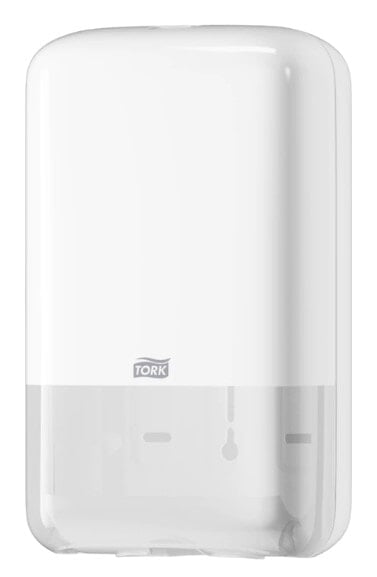 The Tork Folded Toilet Paper Dispenser in Elevation Design is ideal for low to medium traffic locations. It offers improved hygiene with its sheet by sheet dispensing, which lets your guests only touch the sheet they use. Tork Elevation dispensers have a functional, modern design, that makes a lasting impression on your guests. One-at-a-time dispensing for reduced consumption and increased hygiene Compact and space saving design that fits smaller washrooms Easy to refill: less maintenance Height 27.1 cm Width 15.9 cm Length 12.8 cm Material Plastic Colour White