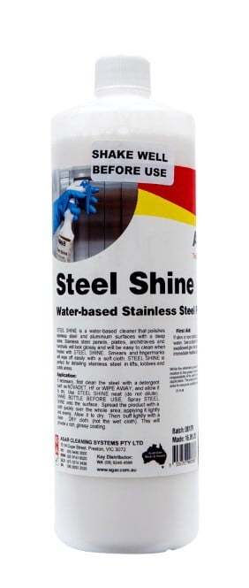 What is Steel Shine? STEEL SHINE is a water-based cleaner that polishes stainless steel and aluminium surfaces with a deep shine. Stainless steel panels around lifts, finger-plates, architraves and handrails can be kept glossy, clean and free of finger-marks and smears by applying a thin film of STEEL SHINE. This shiny film enables marks and smears to be wiped off easily with a soft cloth. Main Benefits Is water-based and safe to use Cleans, polishes and protects metal surfaces Makes daily cleaning quicker and easier