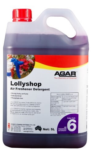 Lollyshop What is Lollyshop? LOLLYSHOP is a sweet, fruity-perfumed cleaner with deodorising and anti-bacterial properties. It works as an air-freshener, cleaner and deodorisers all in one product. Key Benefits Appealing, lingering fragrance. Has a deodorising action. Kills germs. Safe on hard surfaces. Biodegradable product.
