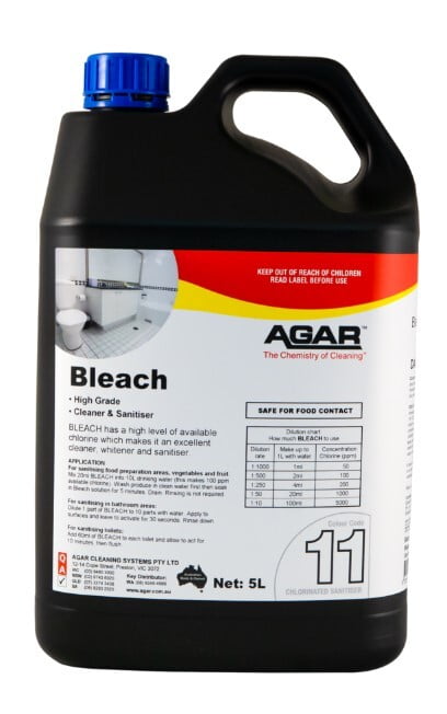 What is Bleach? BLEACH is a solution of sodium hypochlorite in water with an available chlorine content of 5% when packed. Because it offers a very effective method of killing undesirable micro-organisms (germs, bacteria, etc.), BLEACH is an excellent sanitiser. BLEACH also destroys stains, so it is useful in the laundry as a whitening agent. Key Benefits BLEACH is a very effective germ-killer. An excellent sanitiser for food-preparation facilities. Very economical. Approved by AQIS for sanitising food processing equipment.