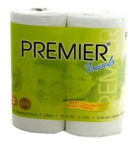 PREMIER KITCHEN TOWEL TWIN PACK 2-PLY GECA APPROVED (10 PACKS OF 60 SHEETS) TRUSOFT PREMIER disposable household towels have revolutionary ‘air pockets’ trapped between the two layers of paper which provide superior absorbency and strength. Super absorbent simply efficient FSC and GECA Certified Ply: 2 Recycled Content: 80%