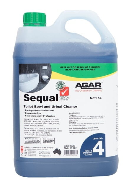 SEQUAL is a powerful cleaner for toilets and urinals. It is a thickened product that clings to vertical surfaces. SEQUAL has been specially formulated to be environmentally preferable.