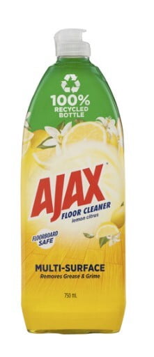 Ajax Multi Surface Lemon Citrus Floor Cleaner has been specially developed to clean your floorboards. Use with confidence varnished wooden floorboards, slate, tiles and other hard washable surfaces. - Removes grease and grime. - Floorboard Safe - 100 % recycled and recyclable bottle - Proudly made in Australia - Contains readily biodegradable surfactants Directions for use: For floors and general cleaning (sinks, stovetops, bathroom sinks) add 1/4 cup of Ajax Floor Cleaner to 1/2 bucket of water (5L) and clean with mop or sponge. No need to rinse. Where to use: Suitable for Linoleum, vinyl, ceramic tiles, varnished wood floor boards and other hard washable surfaces, quarry tiles and slate. Size: 750mL Scent: Lemon Citrus Always read the label. Follow the directions for use. MULTISURFACE FLOOR CLEANER: Ajax Multi Surface Citrus Burst floor cleaner has been specially developed to clean your floorboards SCENT: Enjoy the lemon citrus scent to remove grease and grime USE WITH CONFIDENCE: on slate, tiles, varnished wooden floorboards and other hard washable surfaces RECYCLABLE: 100 percent recycled and recyclable bottle. Does not include Trigger. AUSTRALIAN MADE: Proudly made in Australia