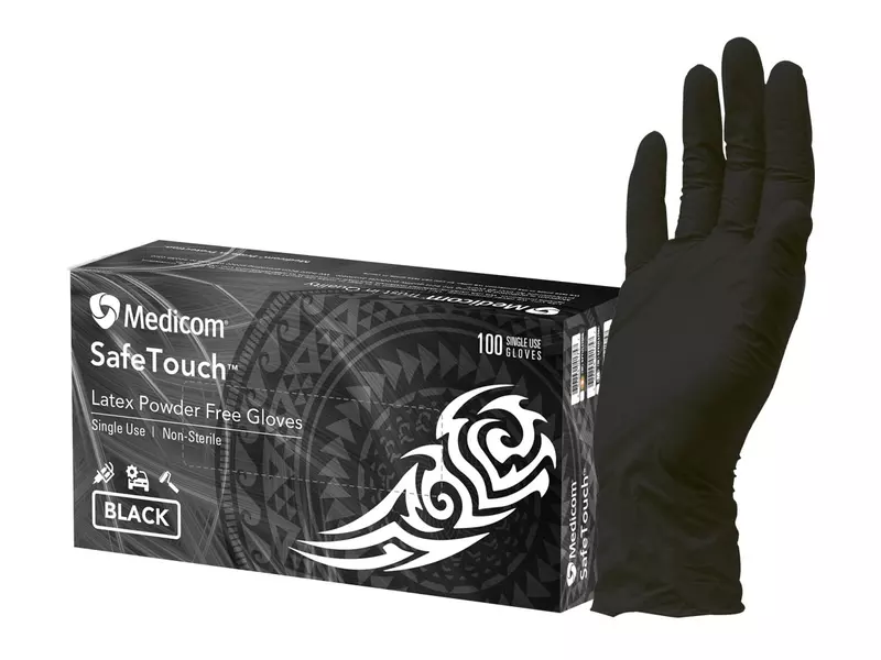 SafeTouch Black Latex Powder Free Exam Gloves Pkt/100 Ctn/10 - Medium