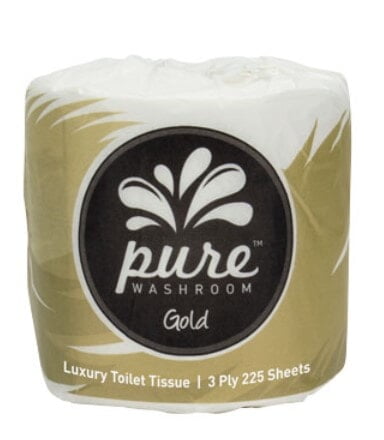 3ply Toilet Rolls 225 Sheets Per Roll Carton 48 Rolls Individually Wrapped Pure Washroom Gold. The ultimate washroom range made from premium quality materials, professionally packaged and suitable for the highest level of all washroom applications. Sourced from the highest paper grades the Pure Washroom Gold range offers five star products at exceptional value for money.
