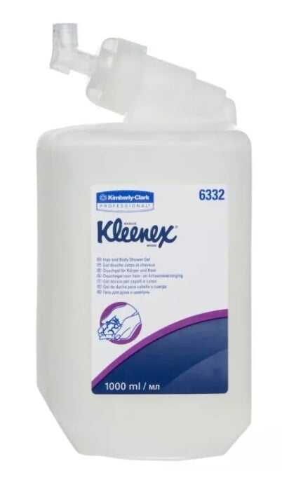 High quality white gel formula shower wash effectively cleans and cares for both skin and hair. Individually sealed shower gel refill cartridges protect the wash before use. KLEENEX® Hair & Body shower gel is suitable for use in public facilities including hospitality and offices and can also be used as a hand wash. Size: 1000ml Pod Qty: Carton of 6 Pods