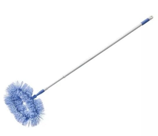 Cobweb & Fan Broom is designed with a round, loop style head which allows to fit over objects such as fan blades. Long, flagged bristles efficiently trap dirt, dust and cobwebs. Size: W400 x D145 x H2000mm