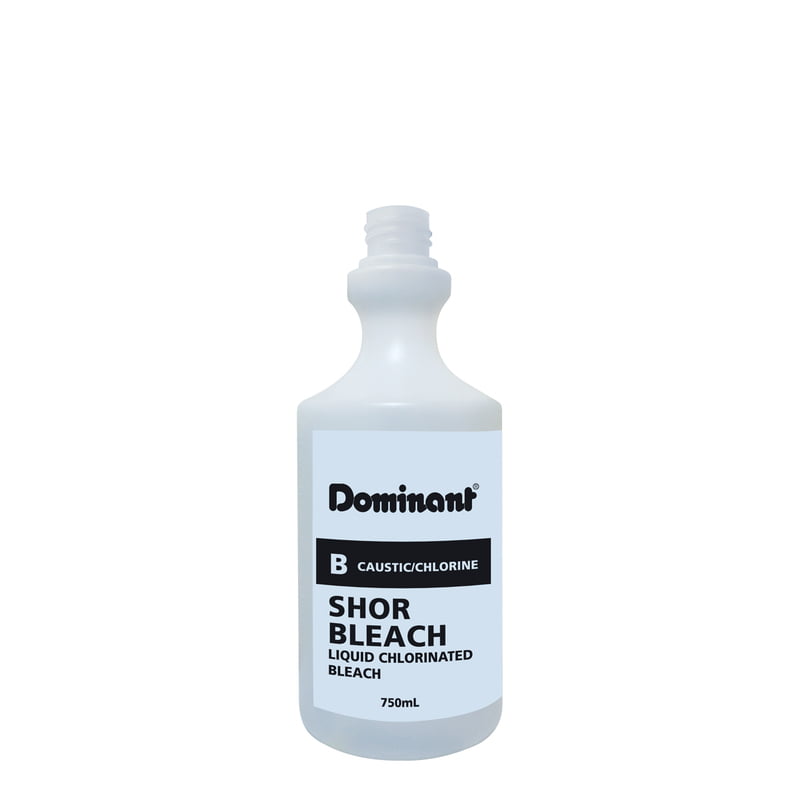 Empty 750mL dispensing bottle for dilution of concentrated Shor Bleach product. Features Labelled bottle for safe usage and accurate dilution 750mL lightweight bottle