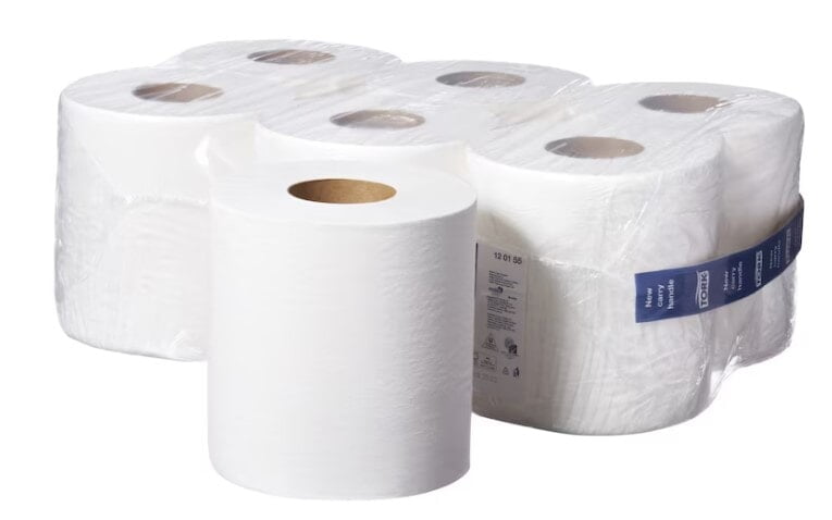 This TTork Basic Paper Centrefeed Roll is compatible for use with your Tork M2 System Dispenser. It has a centerfeed design allowing for 1 handed use and can be used to wipe up spills and mess. The paper is 1 ply meaning there is less waste. The centerfeed system allows for 1 handed use. This product is FSC certified, so you can be sure your purchase supports healthy forests and protects wildlife. It's compatible for use with M2 Centrefeed Dispensers. This roll measures 20 cm x 300 m. This pack comes with 6 rolls. This paper is white.