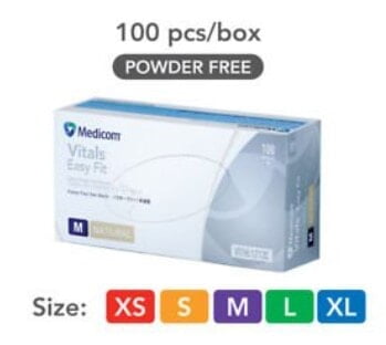 MEDICOM VITALS EASY FIT LATEX POWDER FREE GLOVES Smooth texture for excellent tactile sensitivity and manual dexterity Made with natural rubber latex Available in: Extra Small, Small, Medium, Large, Extra Large