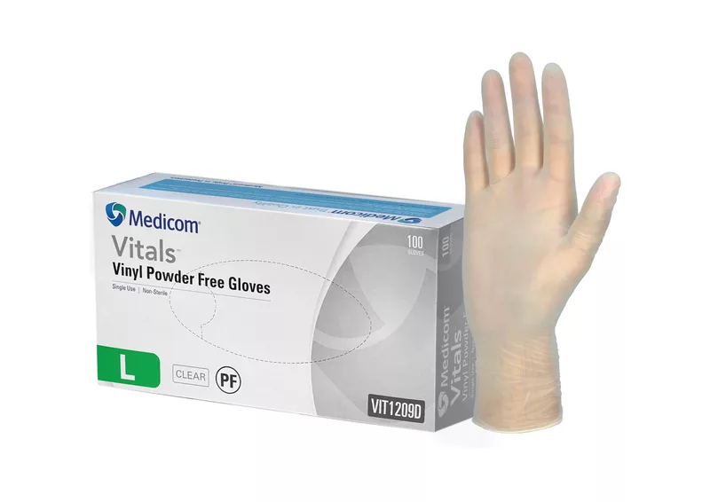Vitals Vinyl Powderfree Clear Gloves -Pkt/100 - Large