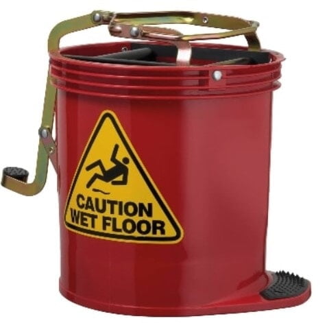 Description Metal handle & non-slip foot pedal. Dimensions: W310 x D490 x H370 mm. Ideal for heavy duty commercial use. Red Colour code for use in Bathroom cleaning. Available in colour coded range.
