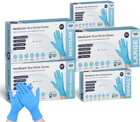 Handicare Blue Nitrile Powder Free - Large Pkt/100 Ctn/10