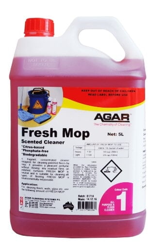 What is Fresh Mop? FRESH MOP is a hard floor cleaner designed for high-gloss floors such as terrazzo, marble and slate. It will not streak on glossy stone floors or polyurethane-sealed timber floors. Key Benefits Highly active, mildly alkaline detergent – dilutes up to 1:80 Safe for use on sensitive surfaces Ideal for mopping – rinse free Effective in hot or cold water Based on regrowable raw materials Biodegradable Economical, non-toxic and mild Versatile & leaves a lingering perfume