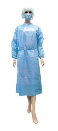 Medicom SafeWear Poly-Coated Isolation Gown ANSI / AAMI PB70 Level 2 Box 50 Light Blue Performance with protection SafeWear Poly-coated Isolation Gown offers maximum fluid protection for use in situation which high fluid exposure and heavy splashes are expected. Applicability - Minimal to low-risk situation Blood draw from a vein, Suturing, Intensive care unit, Pathology lab • Reinforced ultrasonic welding • Waist tie to secure coverage • Soft velcro tape at collar • Full back coverage design • Knitted cuffs for extra comfort and prolong wearing
