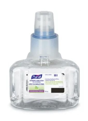 PURELL® Antiseptic Hand Foam 700 mL Refill for PURELL® LTX-7™ Dispenser Hand sanitising foam. 1.1 mL efficacious dose Contains 72% v/v absolute ethanol Kills more than 99.99% of most common germs that may cause illness Thick, luxurious foam Contains skin conditioners Made with 100% naturally renewable ethanol Biodegradable formula Global GreenTag LCARate™ Bronze Streamlined certified SANITARY SEALED™ refill helps prevent contamination Size: 700 mL