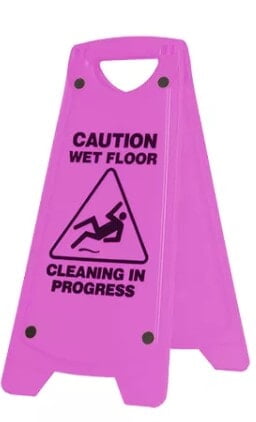 Non-slip A-Frame Caution Safety Sign WET FLOOR – Pink They have unique patented rubber bumpers on all corners to prevent the sign sliding if stepped upon when laid flat on the floor, helping to prevent workplace injuries to staff and the general public. The lightweight, compact folding design allows for convenient storage on carts and easy transportation between work areas. They are also available in multiple fluorescent colours for added visibility. Fluorescent colours for high visibility. Dimensions: 300 x 280 x 625mm