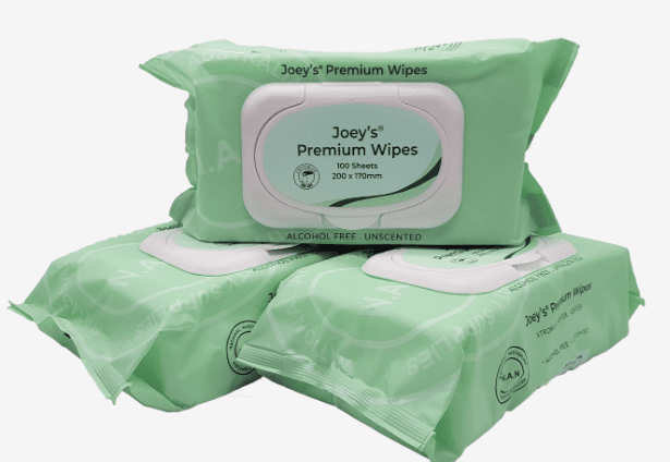 Joey Premium wipes are great value with the following features: Softer Stronger Clothlike One hand use from the first wipe till the last Pop-Up with re-sealable lid No tub required (more hygienic) Packed in a convenient pack for use at home or while out an about 200mm x 170mm