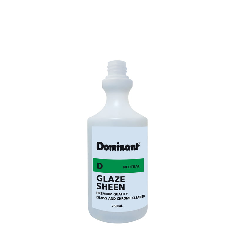 Empty 750mL dispensing bottle for dilution of concentrated Glaze Sheen product. Features Labelled bottle for safe usage and accurate dilution 750mL lightweight bottle